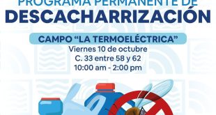 Progreso, Yucatán, a 09 de octubre de 2025.-Con el objetivo de reforzar las acciones de salud pública y eliminar criaderos de mosquitos, la Dirección de Gestión Integral de Residuos Sólidos “Prolimpia” del Ayuntamiento de Progreso mantiene activo el Programa Permanente de Descacharrización. Este viernes 10 de octubre se llevará a …