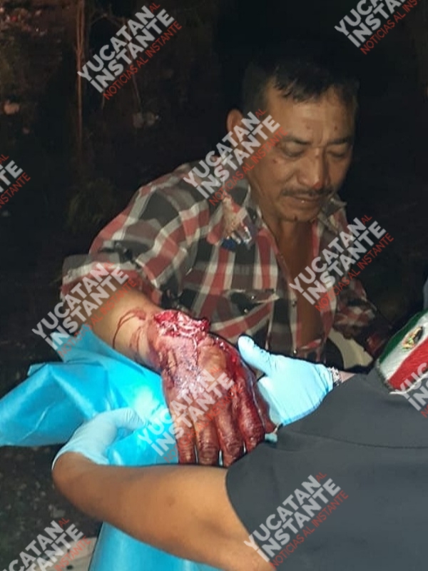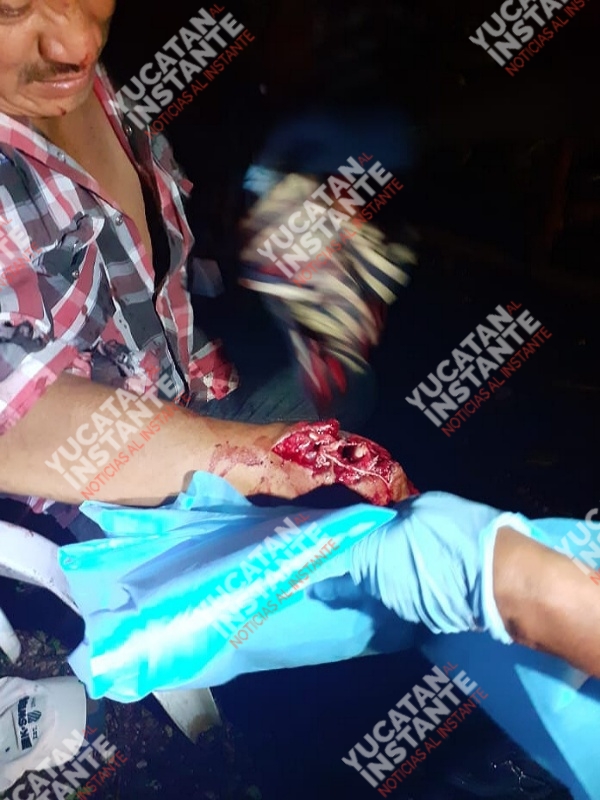 Como pudo pidió auxilio, arribando paramédicos municipales para atender y llevarlo al centro de salud de Umán. Finalmente tuvieron que traspasar al hospital H’Orán a don Juan debido a que tuvo la pérdida de tejidos en su extremidad.
