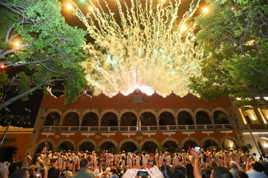 El momento más especial se dio a la medianoche, cuando meridanos y visitantes unieron sus voces para cantarle las mañanitas a la ciudad mientras el cielo se iluminó con luces de colores de un espectáculo de pirotecnia que anunció oficialmente el cumpleaños 483 de la muy noble y leal ciudad de Mérida.