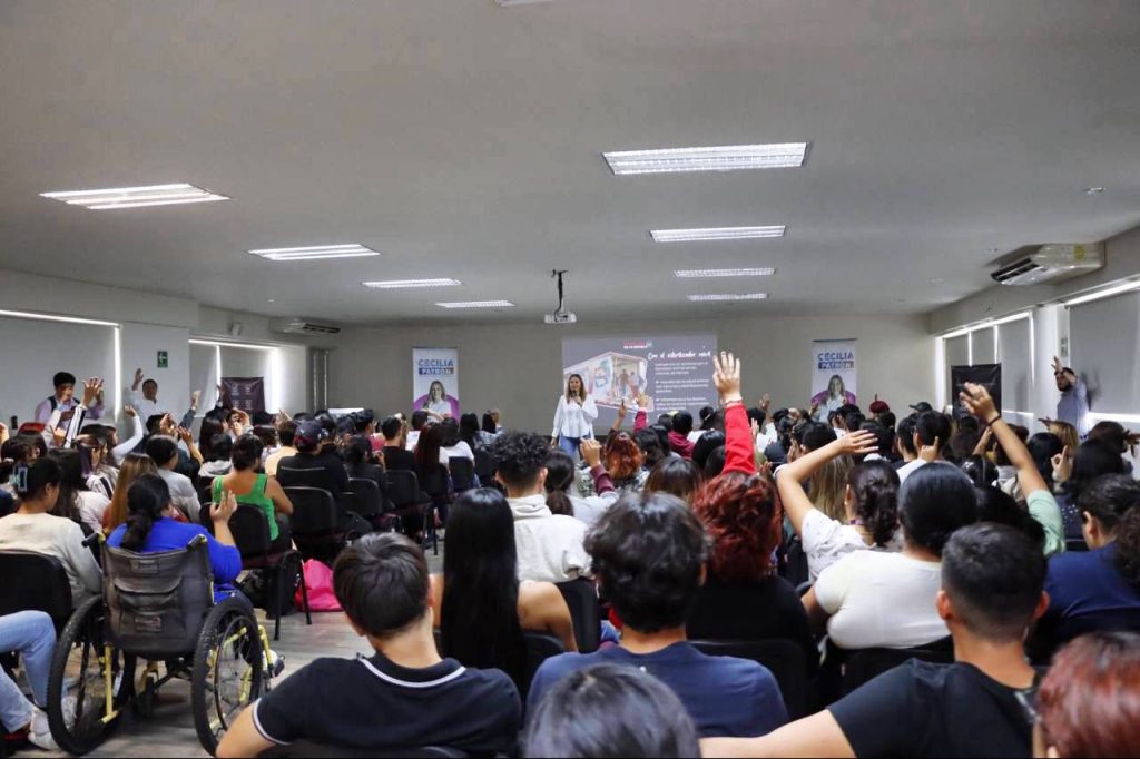 Cecilia habló sobre las leyes que ha impulsado como las del primer empleo para las juventudes, del servicio social como experiencia laboral y la 3 de 3 contra violentadores y deudores alimentarios.