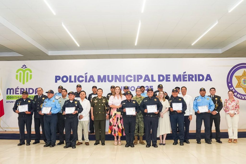 “Reconocer estos 22 años de la Policía Municipal, es reconocer a mujeres y hombres que con profunda vocación de servicio han protegido a la ciudadanía y cuidado a las familias meridanas. Su labor diaria es un pilar de la paz y seguridad que distingue a Mérida”, expresó.