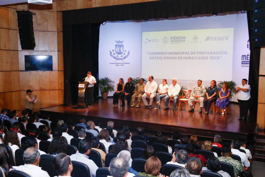 Mérida, Yucatán a 23 de mayo de 2025.- En constante preparación y profesionalización para el fortalecimiento de la cultura de prevención ante fenómenos meteorológicos en Mérida, la Presidenta Municipal Cecilia Patrón Laviada reconoció los esfuerzos realizados dentro del marco del Congreso Municipal de Preparación ante el Riesgo de Huracanes 2025.