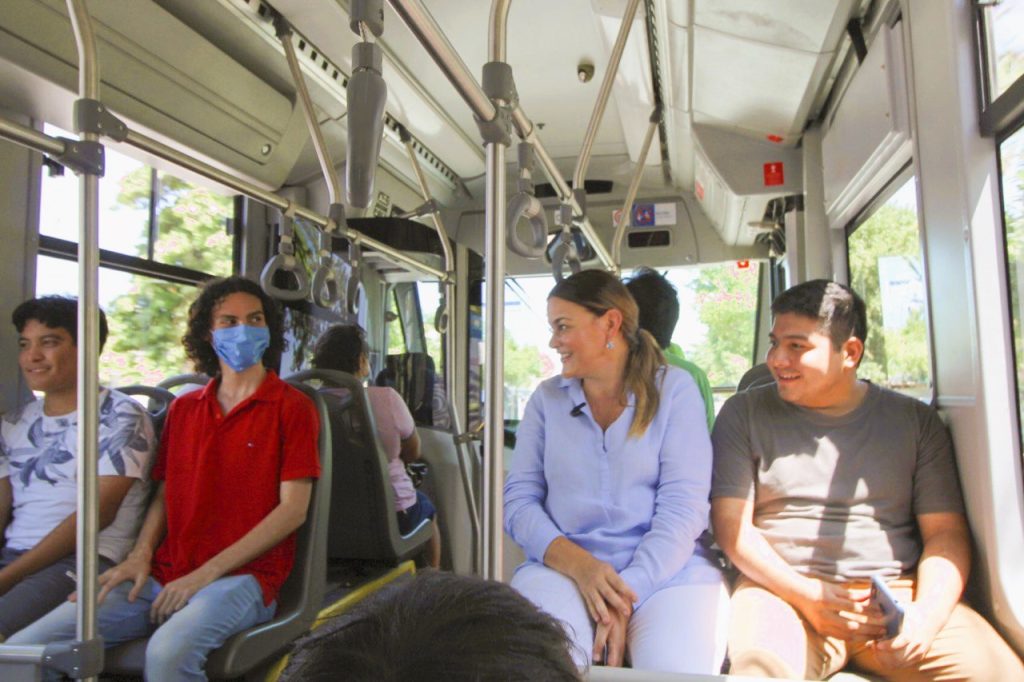 Mérida, Yucatán, 4 de abril de 2023.- Para conocer de primera mano, escuchar y recoger comentarios sobre el nuevo sistema del transporte público Va y Ven, la diputada federal Cecilia Patrón salió de su Casa de Enlace ubicada en el Fracc. Vergel II y, tras esperar algunos minutos en la parada del Circuito Metropolitano ubicada en la esquina de Av. Universidad Pedagógica con la calle 19, abordó un camión de dicha ruta, con destino a una Mesa Solidaria y reunión con vecinos del Fracc. Vergel 65.