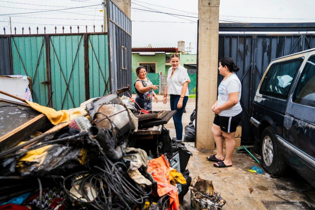 Mérida, Yucatán a 19 de junio de 2024.- La alcaldesa electa de Mérida, Cecilia Patrón, visitó a Doña Ana Rosalía y su familia, que debido a un incendio perdieron sus pertenencias y parte de su hogar ubicado en Paseos de Vergel.