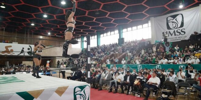 Cerca de 500 menores acudieron el pasado 28 de abril, acompañados por sus padres, a esta Unidad del IMSS ubicada en Naucalpan, Estado de México; algunos llegaron enmascarados para convertirse en atletas de alto rendimiento, como sus héroes, mientras que otros llevaron aplaudidores y pompones de papel color verde para apoyar a los ídolos del pancracio.