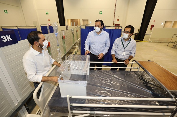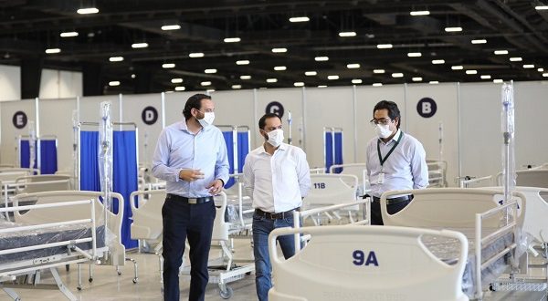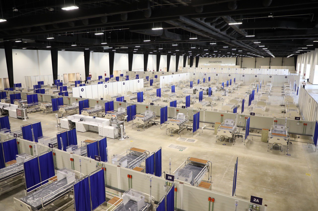 Acompañado del titular de la Secretaría de Salud de Yucatán (SSY), Mauricio Sauri Vivas, Vila Dosal recorrió el nuevo Salón Chichén Itzá en donde se han colocado 490 camas que ya están disponibles y equipadas para la atención médica, las cuales forman parte del proyecto de ampliación hospitalaria que el Gobierno del Estado implementa en previsión de un crecimiento significativo del número de contagios en Yucatán.