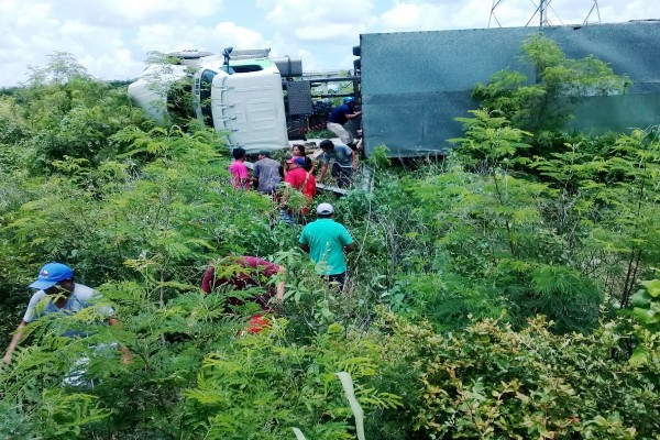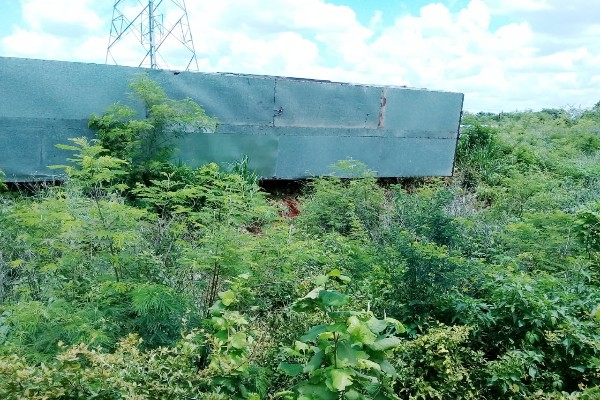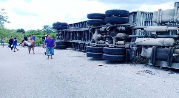 El chófer del tractocamión transitaba por la vía federal Mérida – Cancún, entonces al ingresar por el puente de Hoctún. El chaval le metía pata al acelerador, provocando que al tomar la curva, y también por el peso, perdiera el control del armatoste y volcará de un costado.