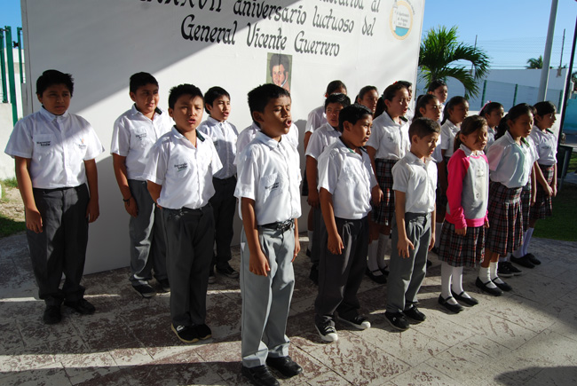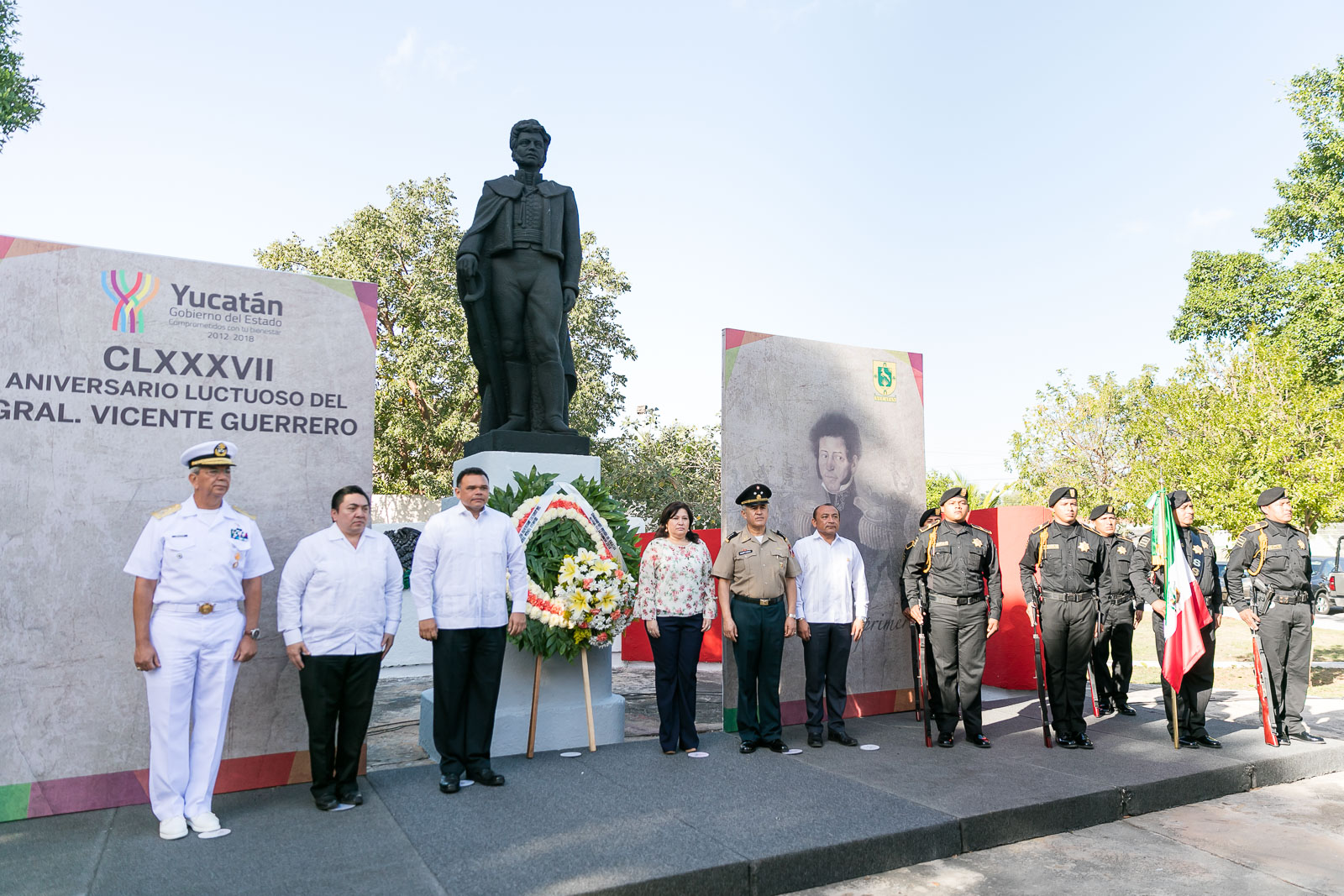 PROGRESO.- A 186 años de la muerte del General Vicente Guerrero, autoridades del municipio de Progreso, encabezada por el alcalde José Isabel Cortes Góngora y alumnos de la primaria que lleva el nombre del benemérito de la patria, se reunieron esta mañana para llevar a cabo ceremonia cívica de aniversario luctuoso.