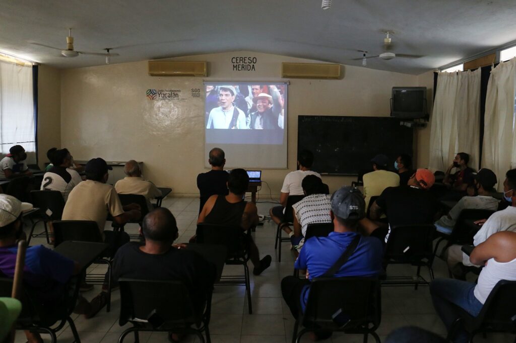 Mérida, Yucatán, 20 de noviembre de 2021.- Con el objetivo de fomentar el hábito de leer entre las personas privadas de su libertad, en el Centro de Reinserción Social (Cereso) de Mérida, se llevó a cabo la Feria de la Lectura, que incluyó presentaciones de libros, una obra de teatro, la donación de un acervo literario y la proyección de una película mexicana.
