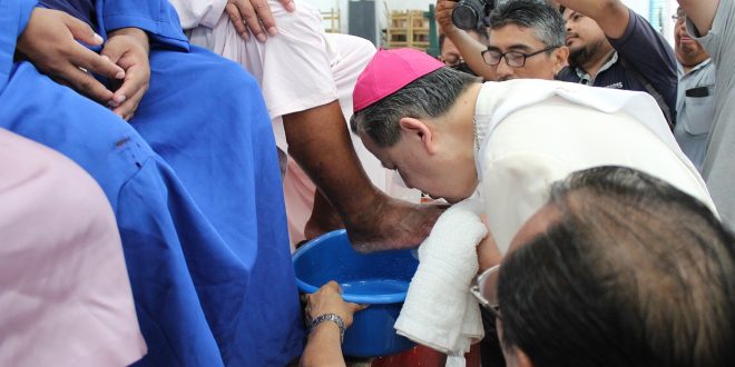 Tal como lo hizo Jesús de Nazaret a sus apóstoles, luego de la Última Cena y antes de ser aprehendido y condenado a muerte, el Arzobispo Rodríguez Vega realizó el ritual del lavado de los pies a doce personas privadas de su libertad del Cereso de Mérida, como un signo de humildad, servicio y amor al prójimo.