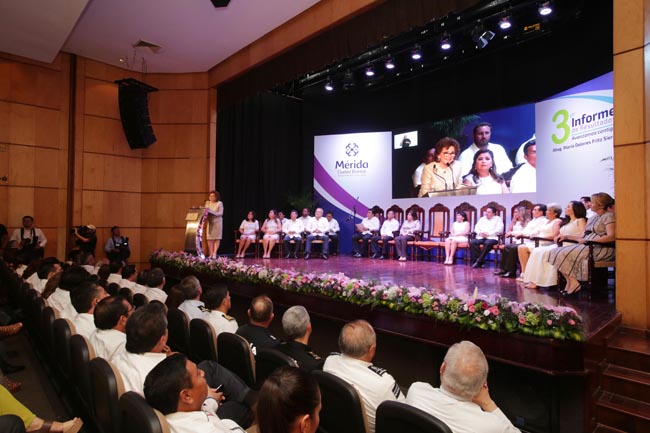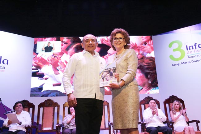 Mérida, Yucatán a 24 de agosto. En el desglose  de los logros y metas alcanzadas en el trienio 2015-2018 con motivo al III informe de resultados de la Administración Municipal, la alcaldesa María Fritz Sierra resaltó que en este periodo que concluye este 1 de septiembre, se lograron grandes objetivos tales como; heredarle a la siguiente administración cero deuda pública y grandes inversiones en obras para el sur de Mérida.