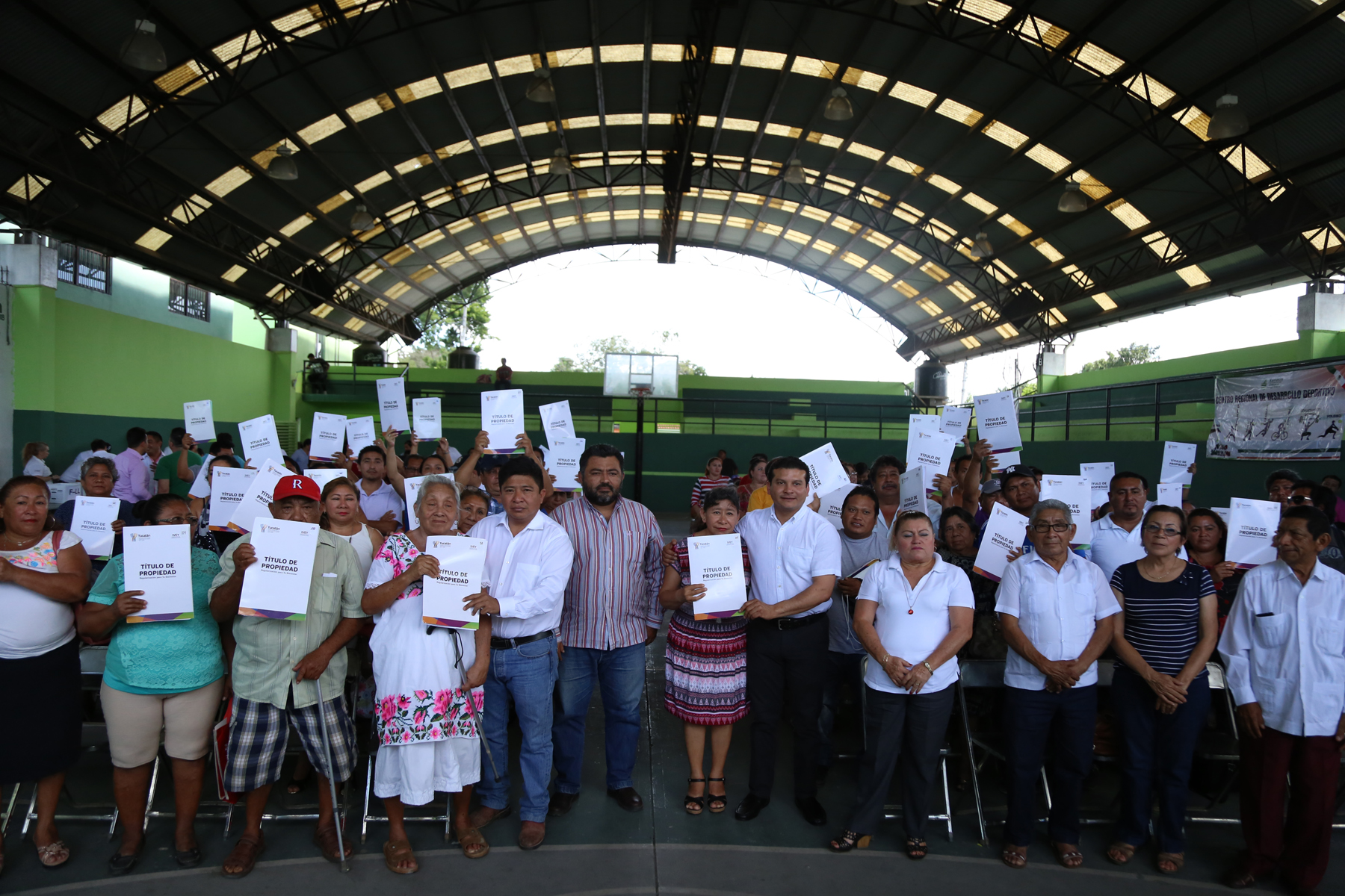 Kanasín, Yucatán.- Residentes de Kanasín de al menos 15 colonias recibieron los títulos de propiedad de sus respectivos predios, con lo que ahora ya tienen la tranquilidad de contar con documentación legal para salvaguardar su patrimonio.