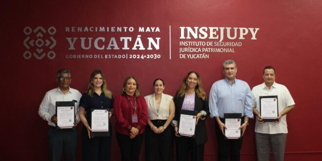 Mérida, Yucatán, a 20 de enero de 2026.- El Instituto de Seguridad Jurídica Patrimonial de Yucatán (Insejupy) entregó constancias de certificación a personas físicas y morales capacitadoras cuyos Programas de Formación, Capacitación, Actualización y Certificación en materia de Intermediación Inmobiliaria cumplieron con los criterios establecidos en la convocatoria publicada en el Diario Oficial del Estado.