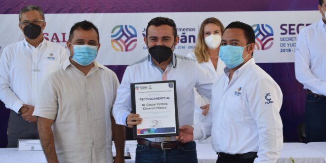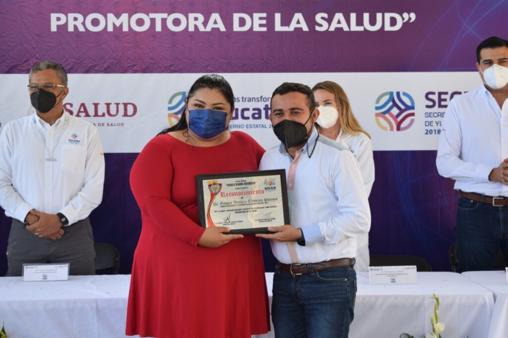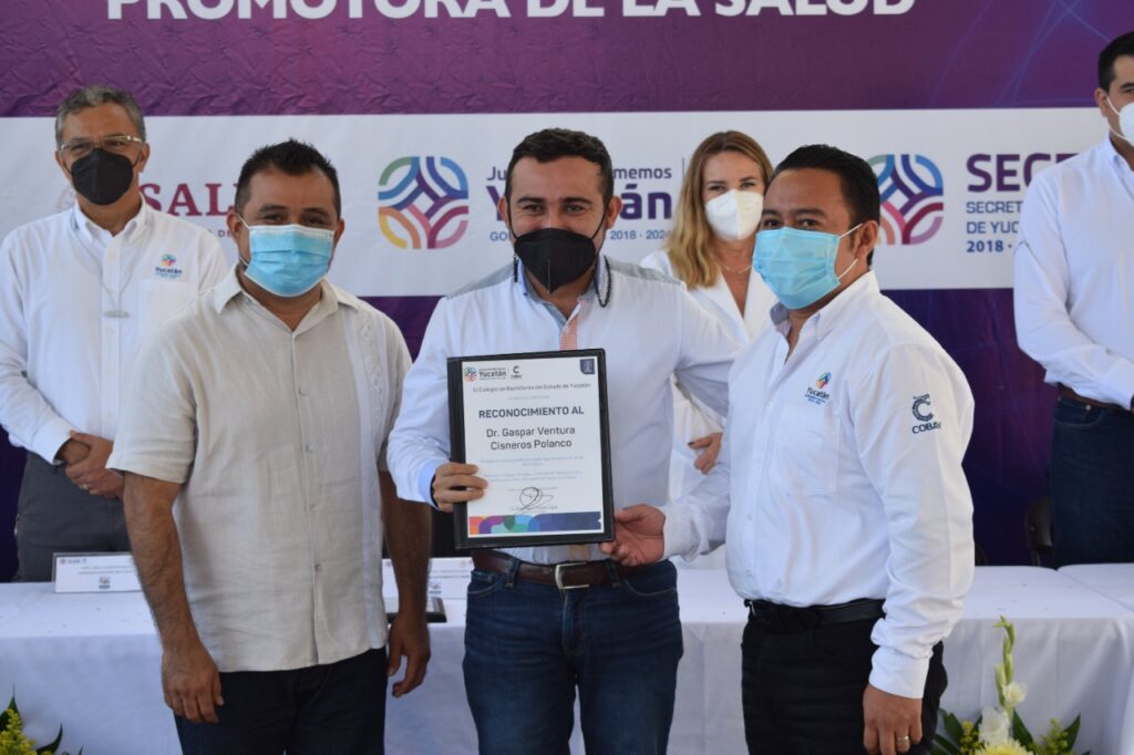 Umán, Yucatán a 10 de diciembre de 2021.- Como resultado del trabajo transversal de las distintas direcciones del Ayuntamiento de Umán 2021-2024, el Colegio de Bachilleres del Estado de Yucatán plantel Umán y la escuela primaria Rubén Darío Herrera, recibieron de manos de autoridades estatales, sus constancias que las acreditan como escuelas promotoras de la salud.