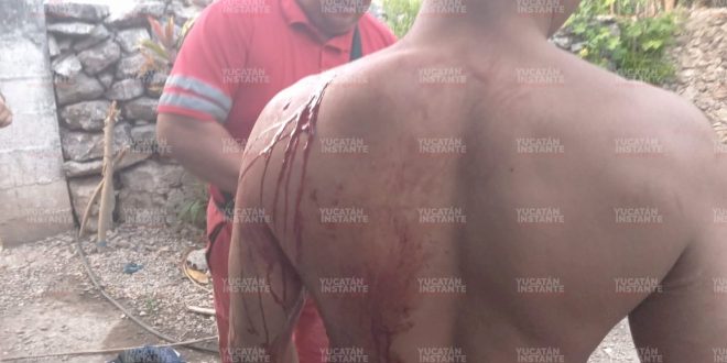 De inmediato, sus parientes solicitaron ayuda a los números de emergencia 911, arribando paramédicos de la unidad Yuc-010 de la Cruz Roja para atender al herido sangrante en la espalda.