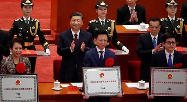 Es en este contexto, el presidente chino, Xi Jinping, entregó medallas el martes a cuatro “héroes” del personal médico, en una ceremonia con cientos de invitados llevando mascarillas en el Palacio del Pueblo, en Plaza Tiananmen de Pekín.