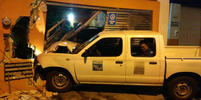 El conductor de la camioneta oficial, Nissan doble cabina placas YR-5149-A transitaba sobre la avenida de Poniente a Oriente y al estar pasando por una pizzería, pierde el control y choca en un costado a un auto estacionado.