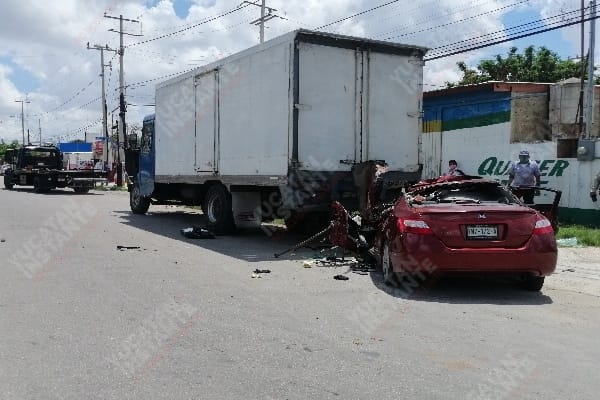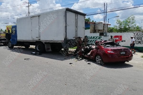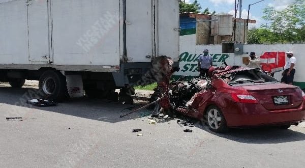MÉRIDA, Yuc., 11 de junio 2020.- Un verdadero milagro ocurrió en el sur de Mérida luego de que un joven guiador perdiera el control de su vehículo y se impactara de ‘seco’ en la parte trasera de un camión estacionado, dejando como pérdida total su automóvil y lograra sobrevivir.