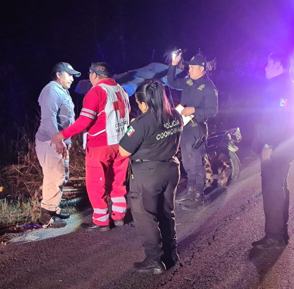 Kinchil, Yuc., a 01 de febrero 2024.- El señor Leobardo Poot Dzib, (a) “Baldo” de 54 años quien tenía estacionado su mototaxi a la orilla de la carretera Kinchil-Samahil, recibió un seco impacto de un vehículo Atos, la noche de anteayer.