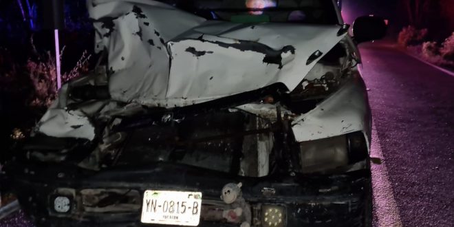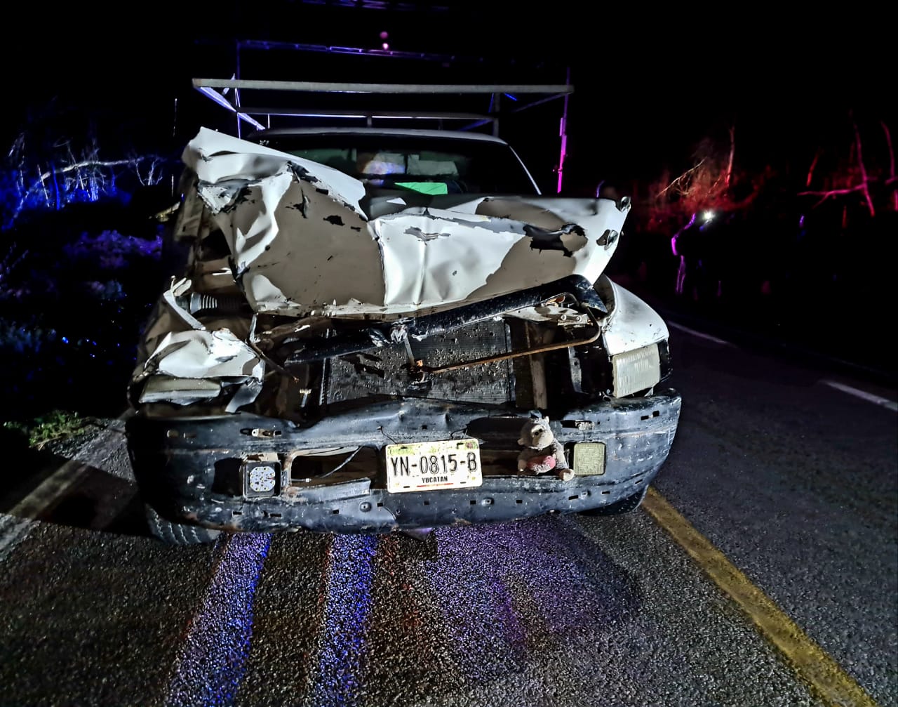 Desafortunamente la res se metió en el arrollo de circulación para ser chocada por una unidad Dodge Ram con matrícula YN-0815-B, que manejaba Jesús Alberto Yamá Solís, donde llevaba en la cama a varios albañiles con destino a Kinchil.