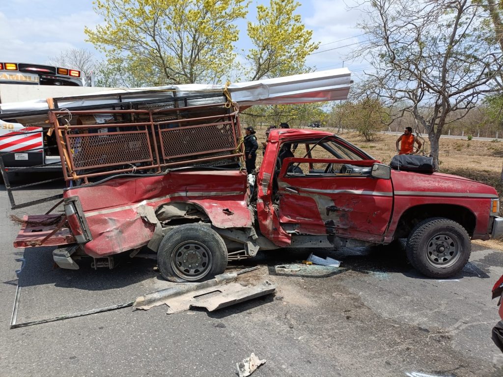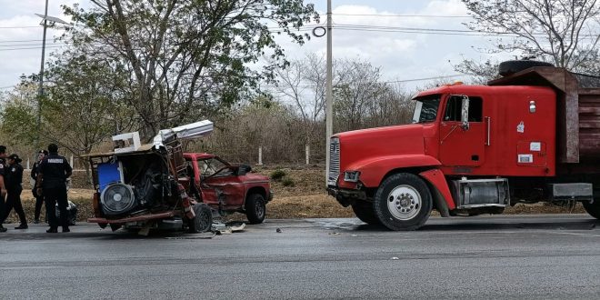 Chófer de una camioneta se mete en el paso de un volquete y termina destrozado en el Periférico de Mérida