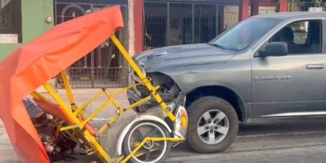 Kanasín, Yuc., a 24 de mayo 2024.- Tres lesionados de consideración dejó el choque de una camioneta contra un mototaxi, el cual fue proyectado contra un camión estacionado en la calle 56 con 69 de este municipio.