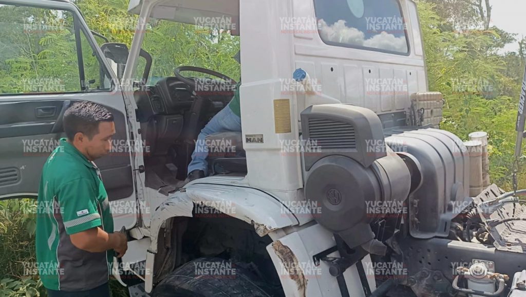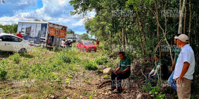 Kinchil, Yuc., a 07 de octubre.- Una maniobra defensiva ayudó a evitar una tragedia en la Kinchil-Celestún, donde el operador de una unidad repartidora de cervezas fue colisionado, y en su astucia el chófer pudo controlar el camión para quedar cruzado en medio de la carretera federal, a la altura del kilómetro 60.