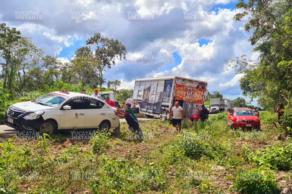 La segunda carretera más peligrosa de Yucatán, volvió a ser noticia en esta ocasión Ángel Vicente Cen Ake, guiaba el Volkswaguen de la empresa Heineken transportando las chevas, para surtir los negocios del puerto, acompañado de otros dos trabajadores en la cabina.