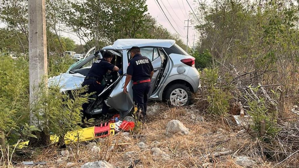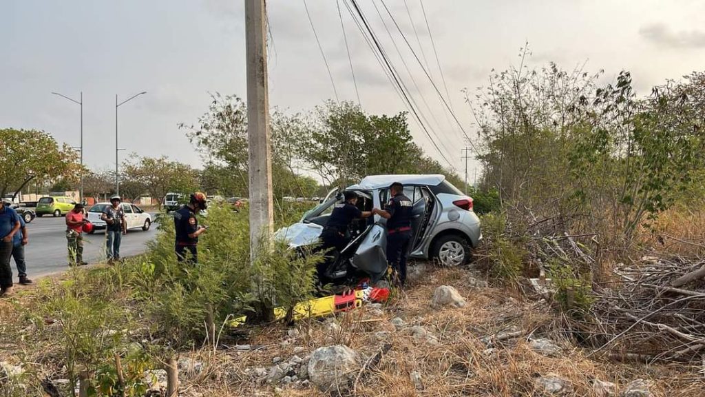 Chofer termina prensado tras estrellarse contra un poste en Periférico de Mérida
