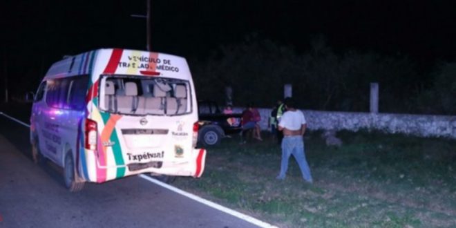 El percance ocurrió anteanoche cuando el chofer de la Van placas A-637-YSA, habilitada como taxi de la ruta Mérida-Tixkokob, transitaba a exceso de velocidad, no respetó la distancia reglamentaria y se estrelló por alcance con la ambulancia de traslado placas YZZ-177-A, perteneciente al Ayuntamiento de Tixpéual.