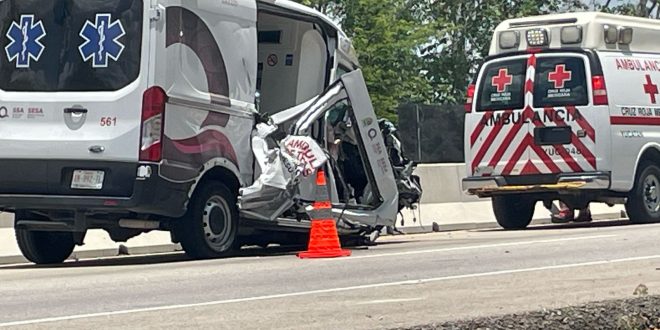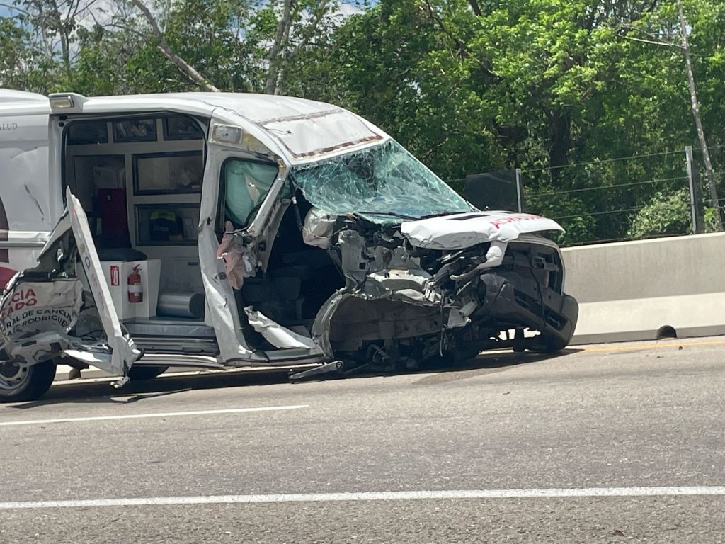 Valladolid, Yuc. a 01 de mayo.- Un tremendo accidente se registró ayer miércoles en el kilómetro 185 de la carretera Mérida-Cancún, donde una ambulancia de traslado del estado de Quintana Roo colisionó contra un tráiler, mientras ambos vehículos se dirigían hacia Cancún.