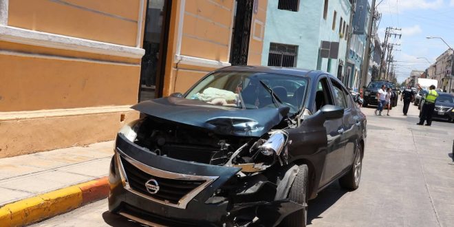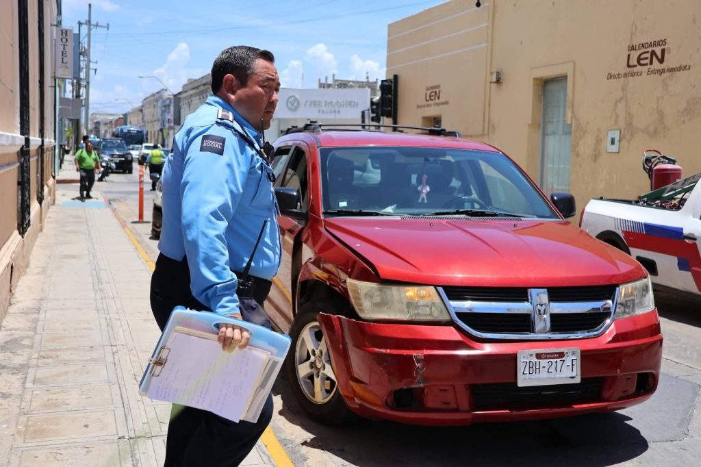 MÉRIDA, Yuc., 7 de agosto de 2025.- La tranquilidad del mediodía en el primer cuadro de la ciudad se vio interrumpida este jueves, cuando una camioneta y un automóvil protagonizaron un accidente en el cruce de las calles 57 con 58 del centro de Mérida.