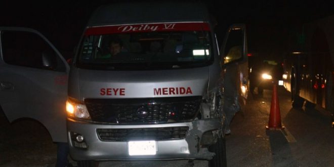 El conductor de la Van Toyota con placas de circulación A-064-YSM, Abraham Santamaría, explicó a las autoridades que se encontraba de retorno de la ruta MéridaSeyé, con alrededor de 15 pasajeros a bordo, cuando de pronto se le metió a un costado el vehículo compacto Mirage Mitsubishi con placas YYE-131-C, lo que provocó el incidente.