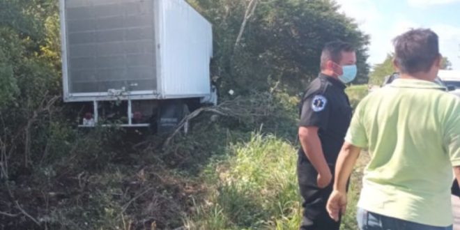 Ciau López como pudo logró salir de la cabina del camión; no presentó lesiones y solo se llevó el susto por lo ocurrido.