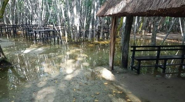 El Patronato de las Unidades de Servicios Culturales y Turísticos del Estado de Yucatán (Cultur), informa que, por las copiosas lluvias en la costa durante la tarde de ayer viernes, y por la creciente en la marea que ocurre en fechas cercanas a la luna llena, el área de cenotes y ojos de agua del parador “El Corchito” quedaron inundadas.