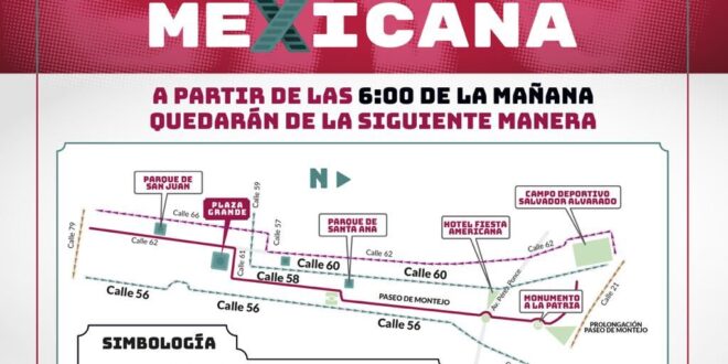 Por lo anterior, se recomienda usar rutas alternas: de sur a norte, la calle 56 desde la 79 hasta la calle 21 de la colonia Itzimná y la calle 60 desde la 59 hasta el estadio Salvador Alvarado. Además, de norte a sur se podrá circular sobre la calle 57 y continuar hasta la calle 66.