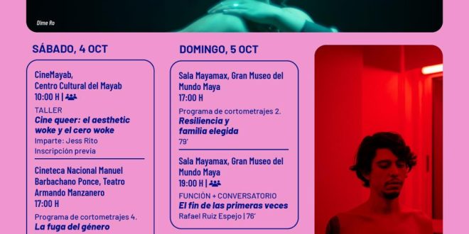 Del 2 al 5 de octubre, la Cineteca del Teatro Armando Manzanero, el Centro Cultural del Mayab y el Gran Museo del Mundo Maya, así como la Facultad de Ciencias Antropológicas de la Universidad Autónoma de Yucatán (UADY), serán sedes de proyecciones, conversatorios, además de un taller sobre la construcción de la imagen queer en la narrativa del cine.