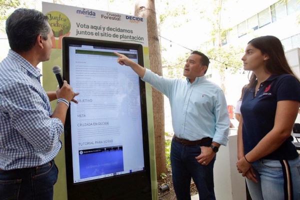 Mérida, 2 de marzo de 2020. Con el propósito de continuar impulsando y enriqueciendo la democracia participativa en el municipio, el alcalde Renán Barrera Concha dio a conocer que a través de la Plataforma DECIDE los ciudadanos elegirán este año los puntos a incluir en la Cruzada Forestal 2020, cuya meta es sembrar más de 15 mil árboles.