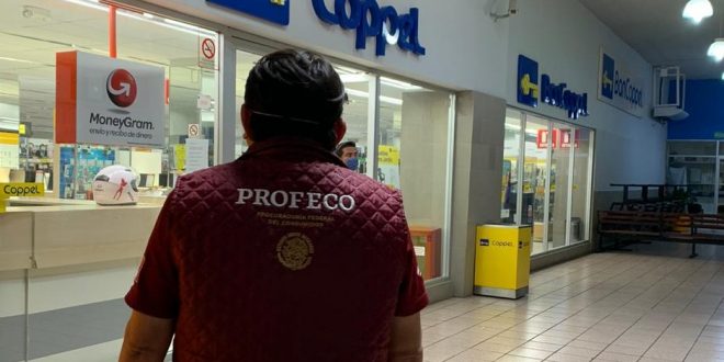 Mérida Yucatán 27 de Abril 2020.- La Procuraduría Federal del Consumidor (Profeco), realizó un monitoreo y visitas de Verificacion a la cadena de tiendas departamentales llamada “Coppel”, estas acciones se realizan en establecimientos con actividades laborales no esenciales y que se encuentran laborando durante la emergencia sanitaria generada por el COVID-19.