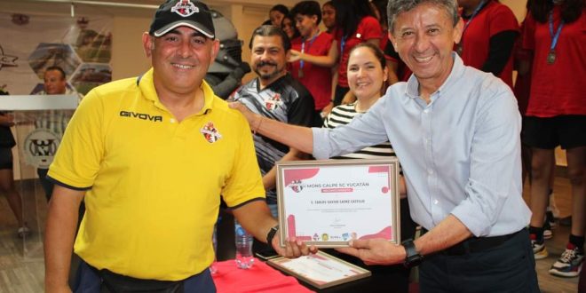 MÉRIDA, Yuc., 27 de mayo 2023.- El club Mons Calpe realizó una clínica de futbol femenil con el técnico Daniel Rodríguez Amaya, ex futbolista argentino que llegó a Yucatán invitado por la institución y tuvo su clínica durante 2 semanas en el estadio “Salvador Alvarado” con 30 niñas de las categorías sub-13, sub-15 y sub-17, misma que llegó a su final en la Universidad Vizcaya de las Américas con la entrega de medallas y reconocimientos a todos los participantes.