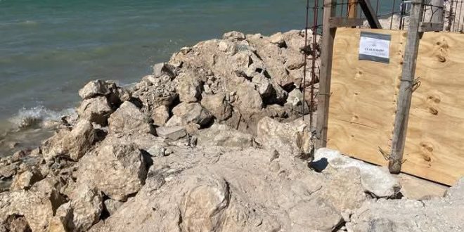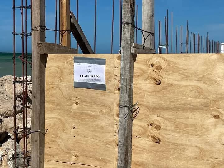 Chicxulub Puerto, Yuc., 01 de abril 2025.- Autoridades de este municipio clausuraron la construcción de un muro que impedía el paso de los visitantes a una zona de playa. En el lugar fueron colocados sellos de clausura y se espera que en los próximos días se retiren los materiales utilizados en la obra.