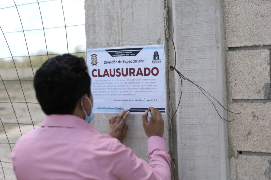 KANASÍN, Yuc., 22 de abril 2022.- El Ayuntamiento de Kanasín informa que este día fueron clausuradas las instalaciones de la plaza de toros “El Retoño”, lo anterior como resultado de que en dicho establecimiento se realizó el pasado domingo un evento -en el que lamentablemente perdió la vida una persona-, que no contaba con la autorización y/o licencia correspondiente, de acuerdo a lo establecido en el Reglamento de Espectáculos y Diversiones Públicas del Municipio de Kanasín.
