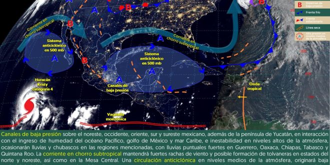 Se prevé cielo parcialmente nublado a nublado, con probabilidad de intervalos de chubascos en el sur de la península de Yucatán, así como lluvias ligeras en el resto de la región, debido al ingreso de aire húmedo del mar Caribe y golfo de México. Ambiente cálido caluroso durante el día y cálido en la noche, con vientos del noreste de 15 a 25 km por hora y rachas mayores a 40 km por hora en el litoral.