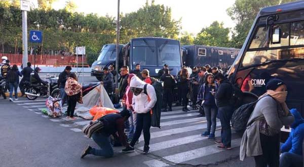 Sin embargo, cerca de la 7 de la mañana integrantes de la Sección XXII llegaron y empezaron a instalar un plantón y casas de campaña frente al cordón de seguridad sobre avenida Congreso de la Unión.