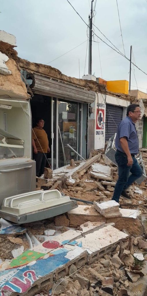 Trabajadores llegaron a esta zona de San Juan Grande, en la cuchilla, para levantar los escombros. Protección Civil Municipal se encargaría de evaluar los daños y la seguridad de predios cercanos