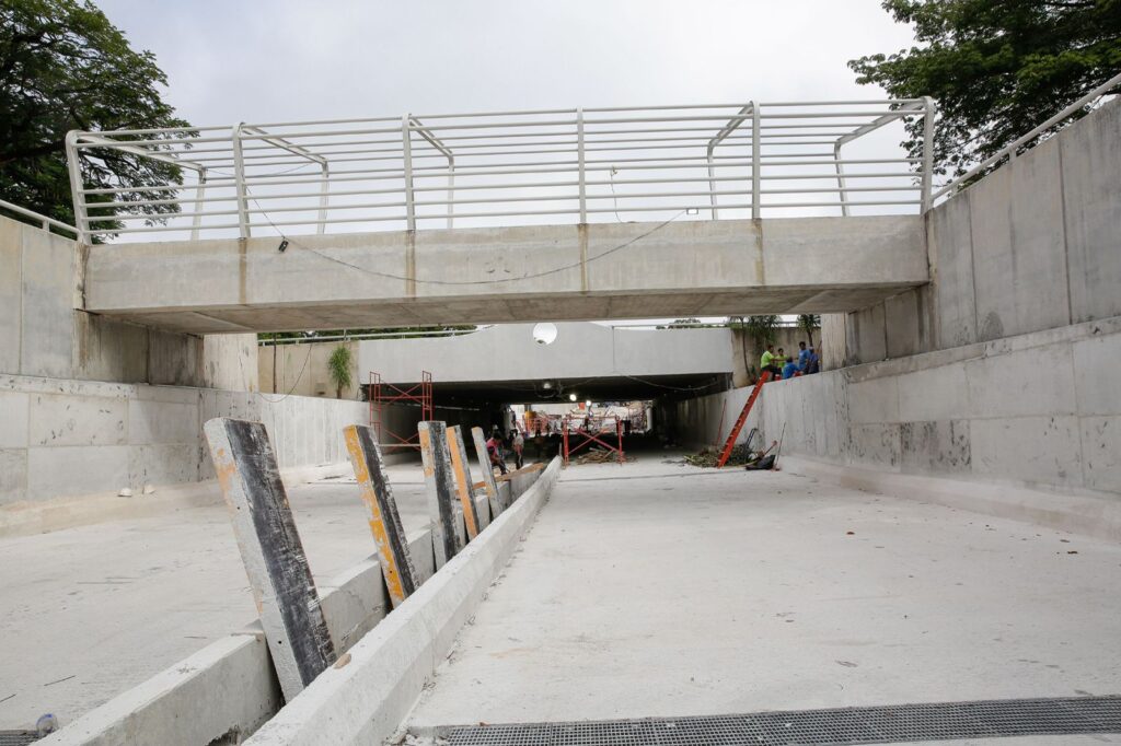 Mérida, Yucatán a 27 de octubre del 2021,- Para mejorar la seguridad al circular por el paso a desnivel de Prolongación de Paseo de Montejo, el Ayuntamiento de Mérida instaló luminarias e infraestructura urbana en la zona.
