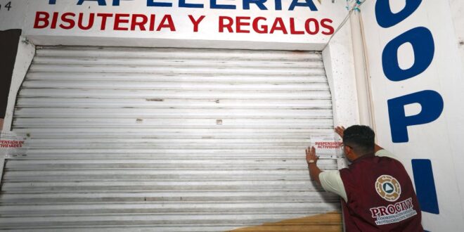 Mérida, Yucatán, a 9 de febrero de 2026.- El Gobierno del Estado, a través de la Coordinación Estatal de Protección Civil (Procivy), informa que fueron colocados sellos de suspensión de actividades en los locales comerciales donde este domingo se registró una explosión en un área interna habilitada como bodega, en la que se almacenaban artificios pirotécnicos presuntamente destinados a su venta irregular.