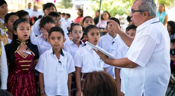 Junto con la directora del plantel, Elsy Santana Sierra, así como autoridades locales y educativas, Villanueva Trujillo atestiguó demostraciones de baile y las interpretaciones del coro, dirigido por el maestro Juan José Guzmán Ramón, cuya formación ocurrió en este ciclo lectivo. Destacaron en su presentación Amorcito corazón, Caminito de la escuela y una canción en zapoteco.