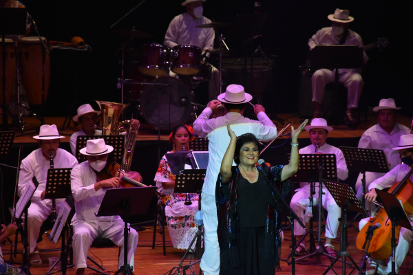 Durante su presentación, la recipiendaria de la Medalla Yucatán 2020 cantó otros éxitos, de la misma autora como “Víctima o ladrón” y “Comunicación” de Felipe Gil para luego recordar sus raíces con un popurrí yucateco y cerrar la noche, todos juntos, con “Aires del Mayab”.