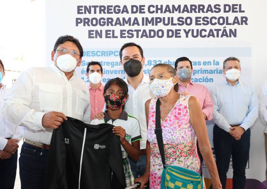 Mérida, Yucatán, 3 de diciembre de 2021.- El Gobernador Mauricio Vila Dosal puso en marcha la distribución de 210,832 chamarras del programa Impulso Escolar para proteger la salud de estudiantes de primaria de 1,258 escuelas públicas de Yucatán ante la temporada invernal, apoyo que, junto a los útiles escolares, zapatos y camisas de uniforme entregados al inicio del ciclo escolar, significan para los padres de familia un ahorro de 2,500 pesos por alumno.